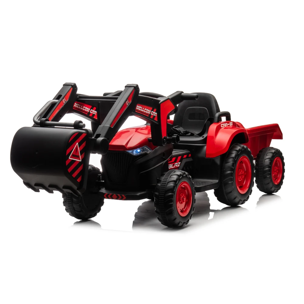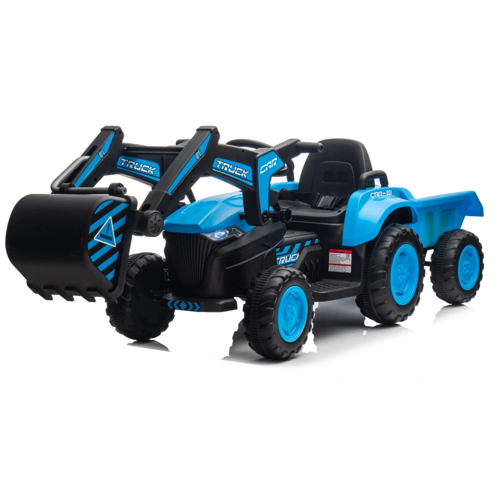 12V 3-in-1 Kids Ride-On Excavator & Tractor - with Detachable Trailer