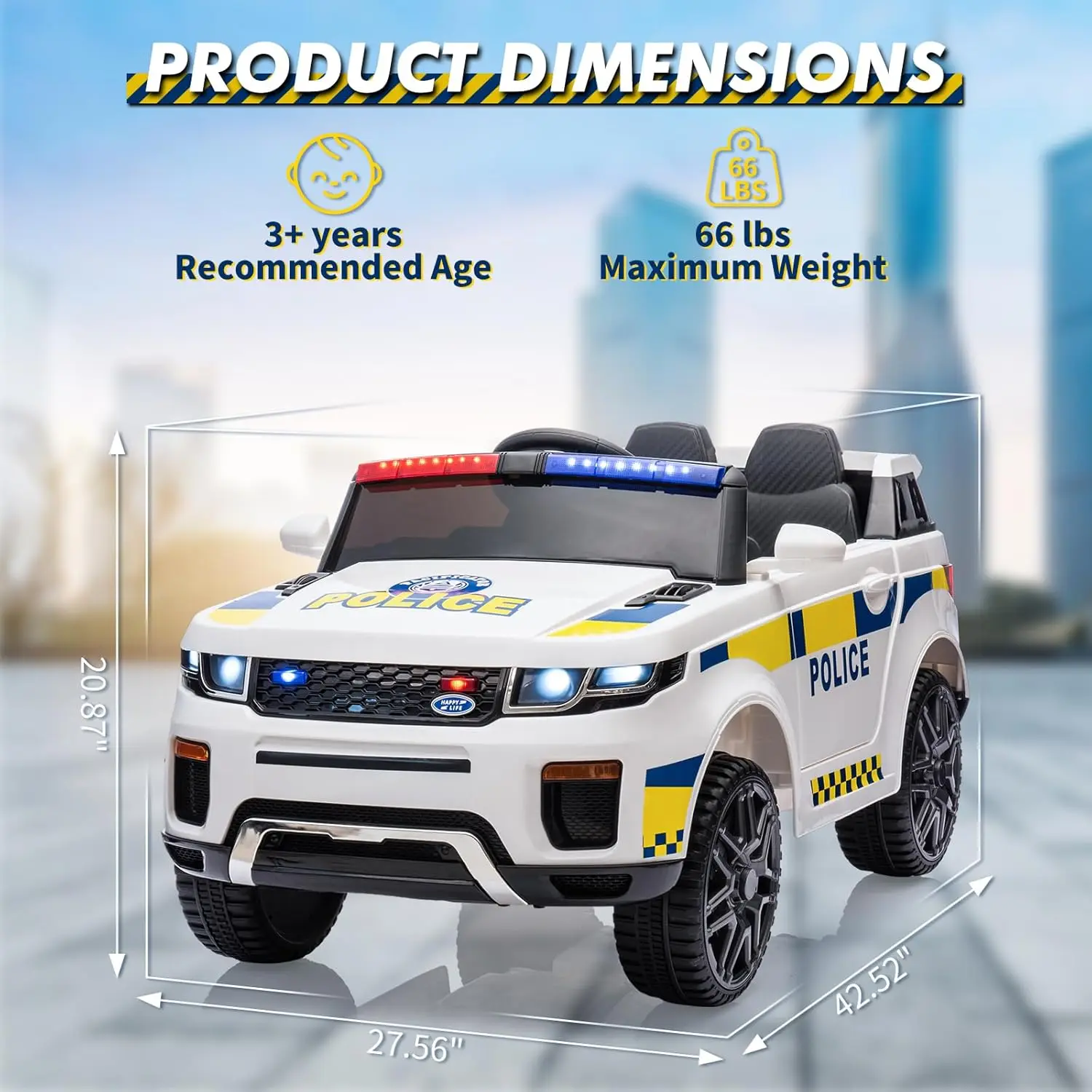 - Authentic Police Car Design: Includes functional sirens, flashing LED headlights, dashboard display, and speaker system for a realistic patrol experience