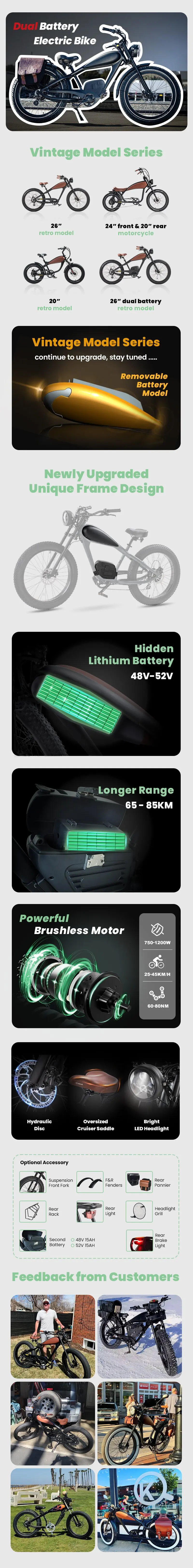 Retro Electric Bike 26 Inch Fat Tire 25AH Vintage Electric Bike