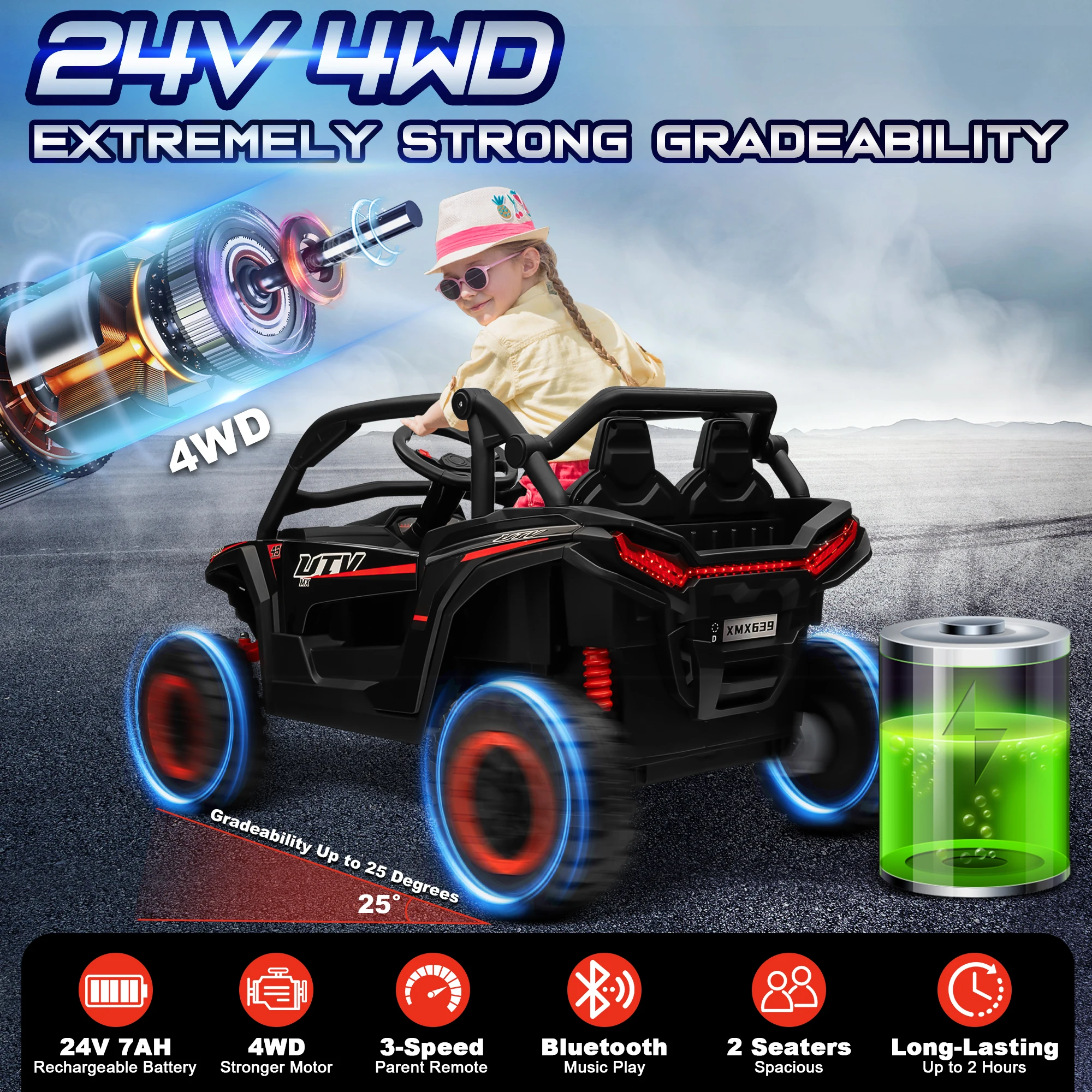 4WD with 4 Powerful Motors: Delivers excellent off-road performance and up to 15° climbing ability