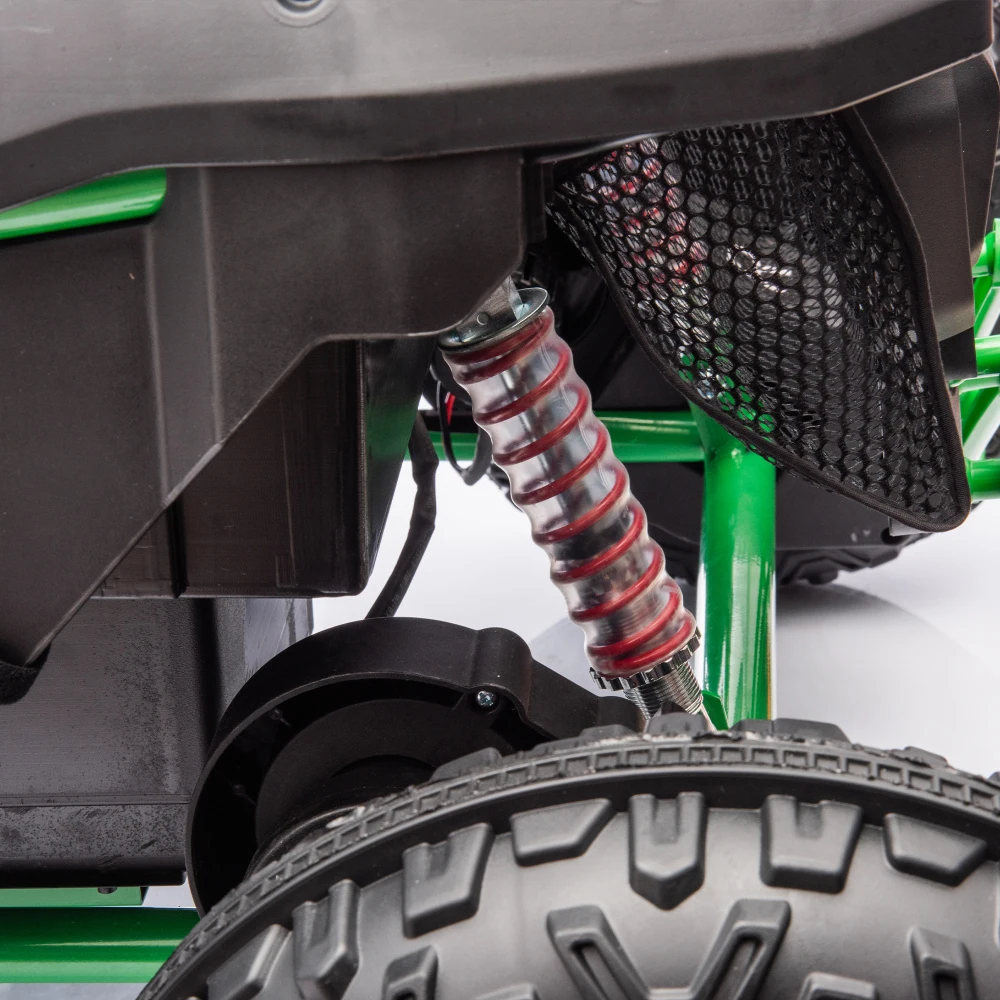 - The four-wheel damping system is a standout feature of this electric car. It acts as a silent guardian, effectively filtering out bumps and vibrations on the road. Whether on a rough path or uneven terrain, children can experience a smooth driving sensation as if walking on flat ground, significantly enhancing the riding comfort.