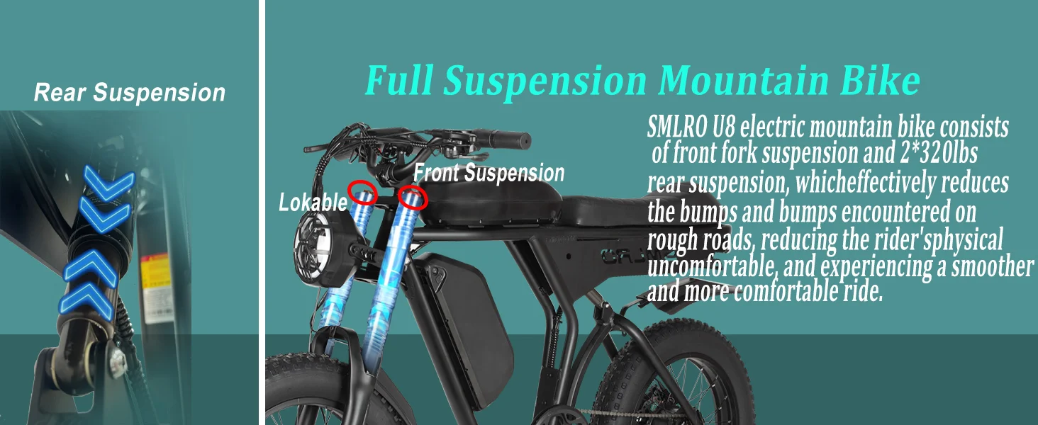 - Suspension: Full suspension for added comfort on rough terrain