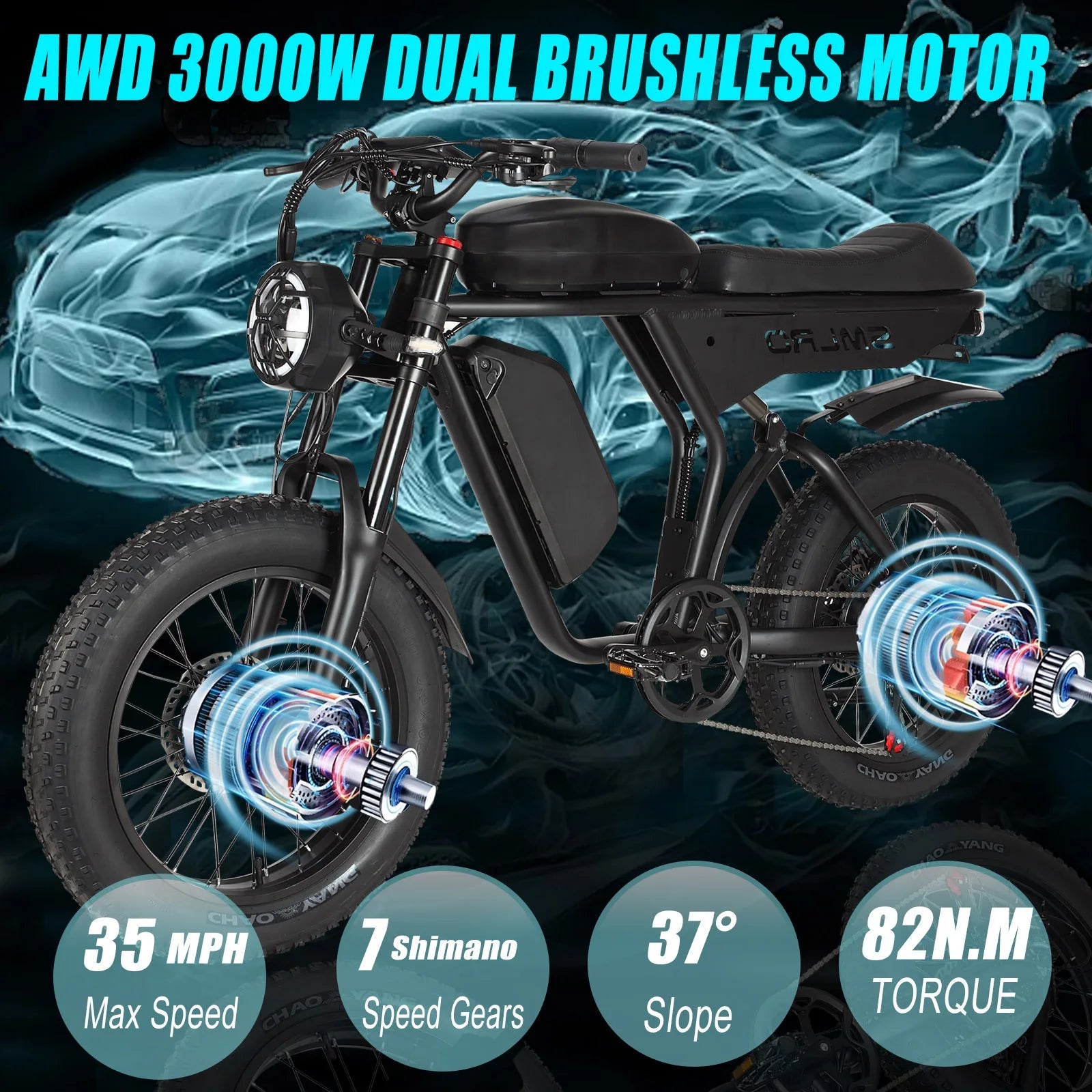 - Motor Power: Dual 3000W brushless motors for powerful off-road performance.