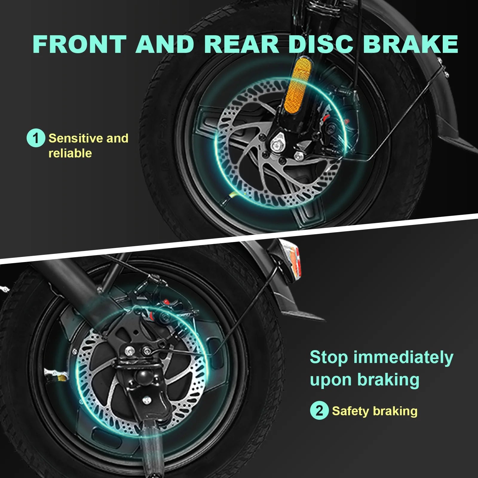 - Braking System: Dual disc brakes on front and rear for superior stopping power and safety.