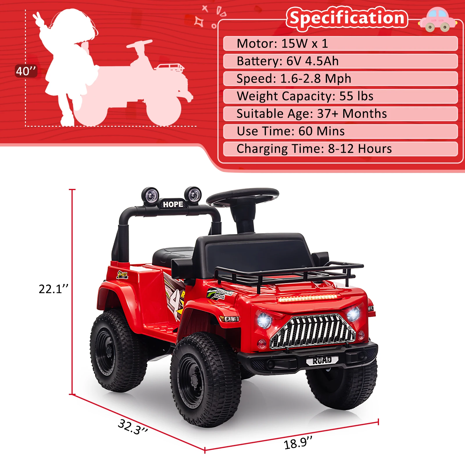 Easy, Safe & Fun – 6V Battery Powered Car for Toddlers with Lights & Storage