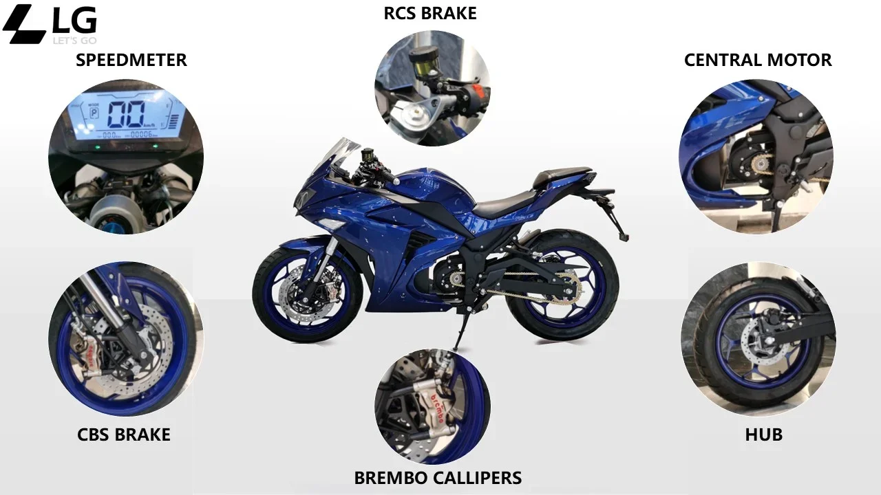 The Speedstorm LG 130 is built with safety and performance in mind, featuring front and rear disc brakes for reliable stopping power, and a TFT color screen for easy monitoring of speed, battery status, and more. The bike also boasts a max load of 200kg, making it capable of handling additional weight for both rider and gear.