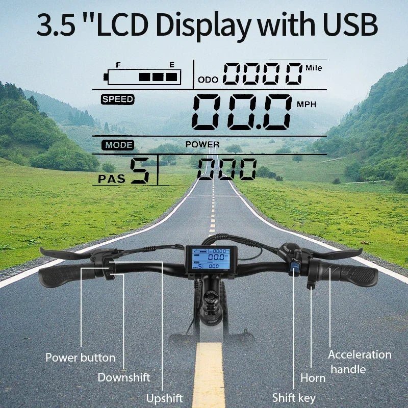 Equipped with LCD display, So You can check the riding data more conveniently, Such as speed, battery level, odometer and so on, You can also switch the pedal assist level according to road condition.