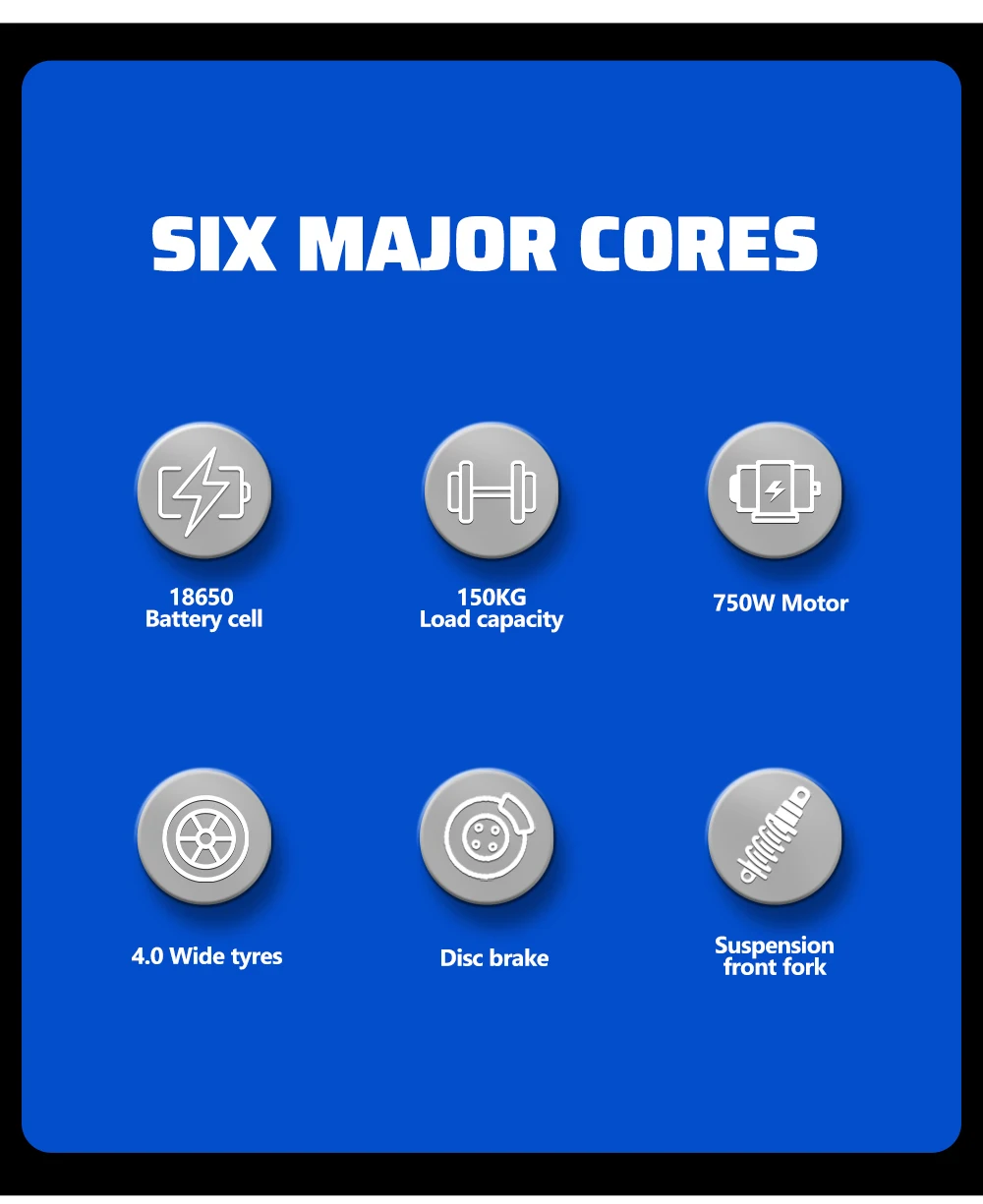 Robust 750 W Brushless Motor with peak outputs over 1,200 W, achieving top speeds of 30–50 km/h (18–31 mph)