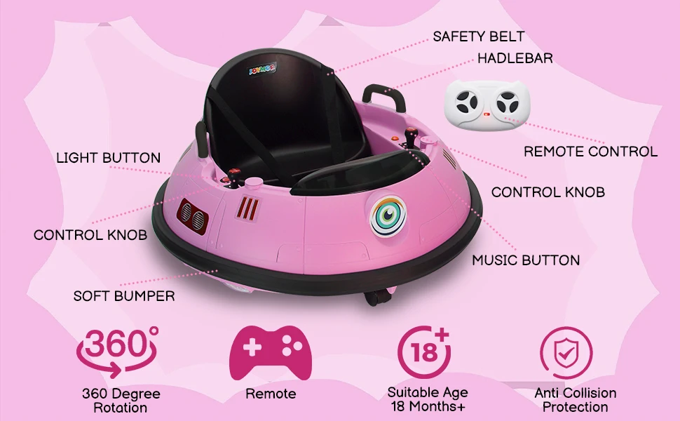 2. 【Safer Manual and Remote Control】: Parent can control the bumper car with remote control to enjoy the fun with your little one. Kids himself can drive the car manually with 2 joystick to move forward or backward or spin.