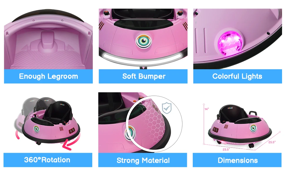 - 360° Spinning Action: Unique UFO-style bumper design allows full-circle spinning for extra fun and excitement.