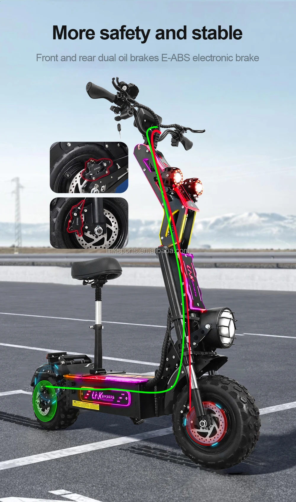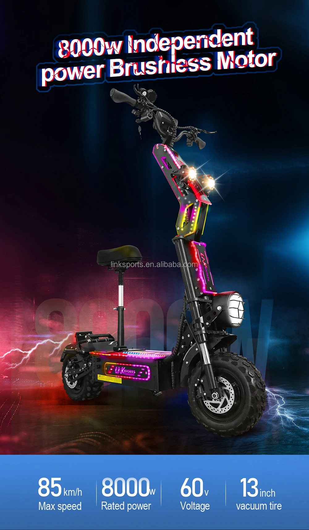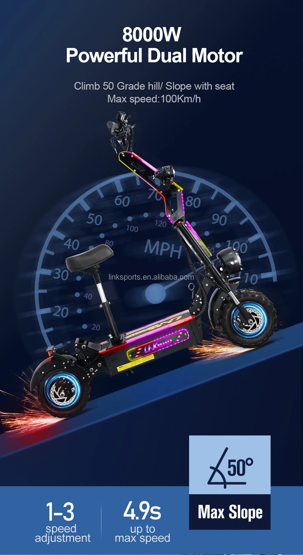Extreme 8000W Dual Motor Power: Reach speeds of up to 100KM/H effortlessly