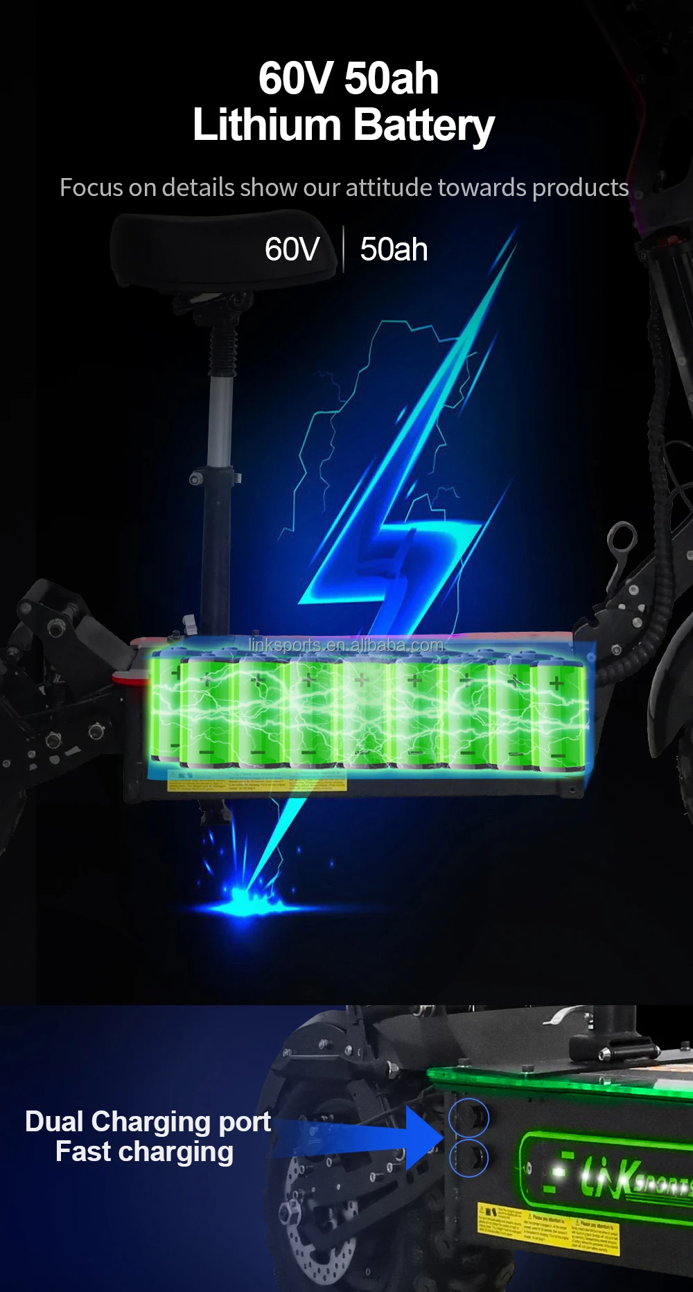 60V 50Ah Battery Capacity: Travel up to 80–110KM on a single charge