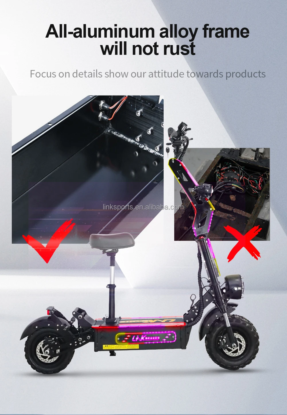 Durable Aluminum Alloy Frame: Lightweight yet tough, with high rider load capacity
