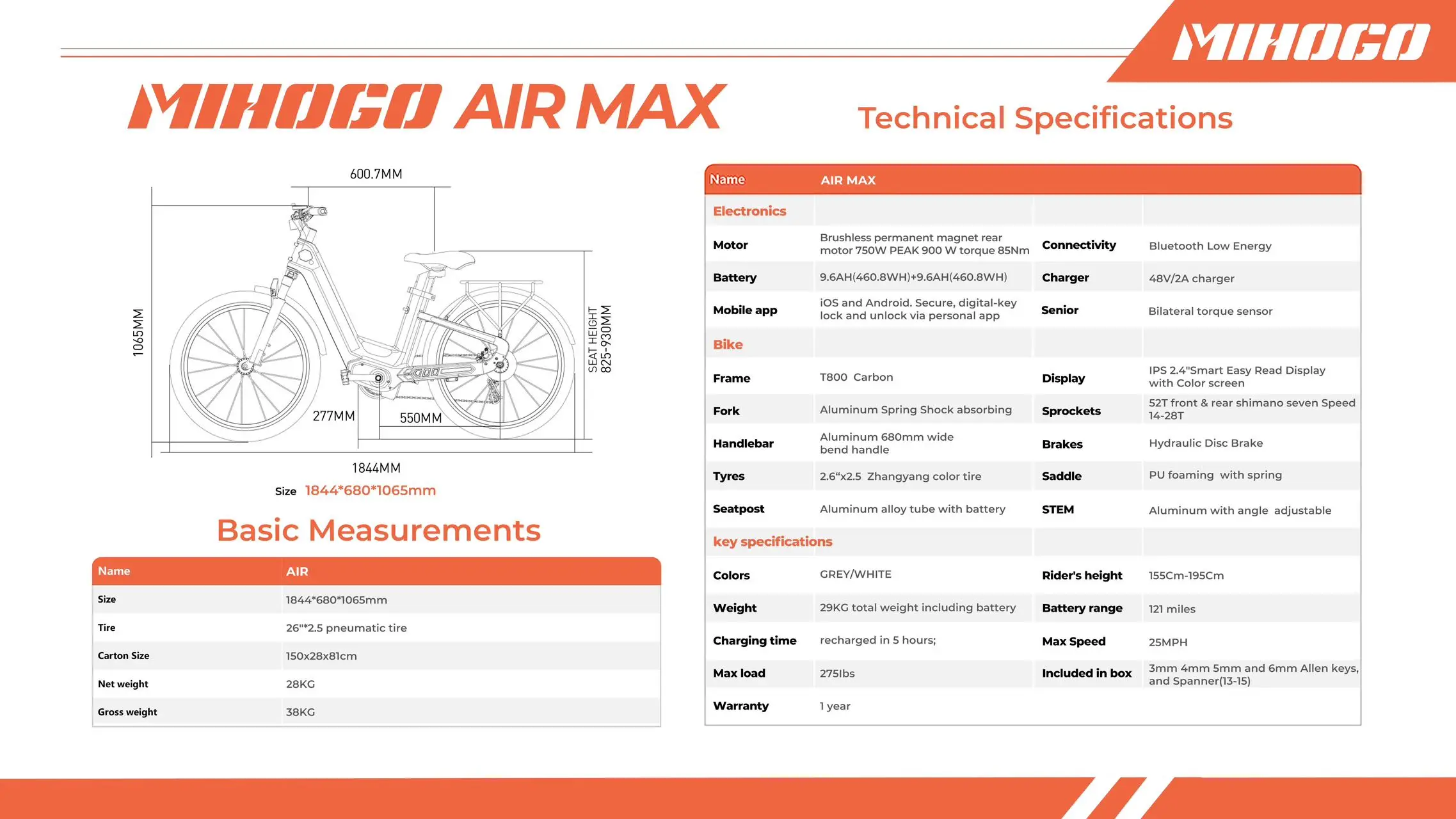 MIHOGO AIR MAX 750W Dual Battery Electric Bike – 60KM+ Range, Dual Battery Design
