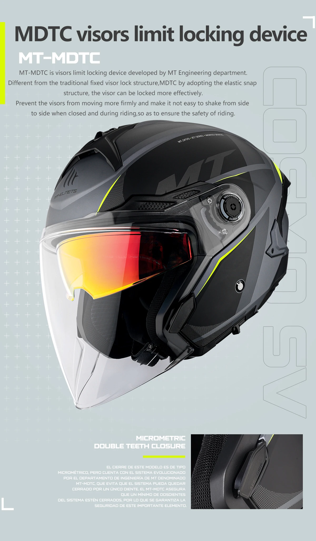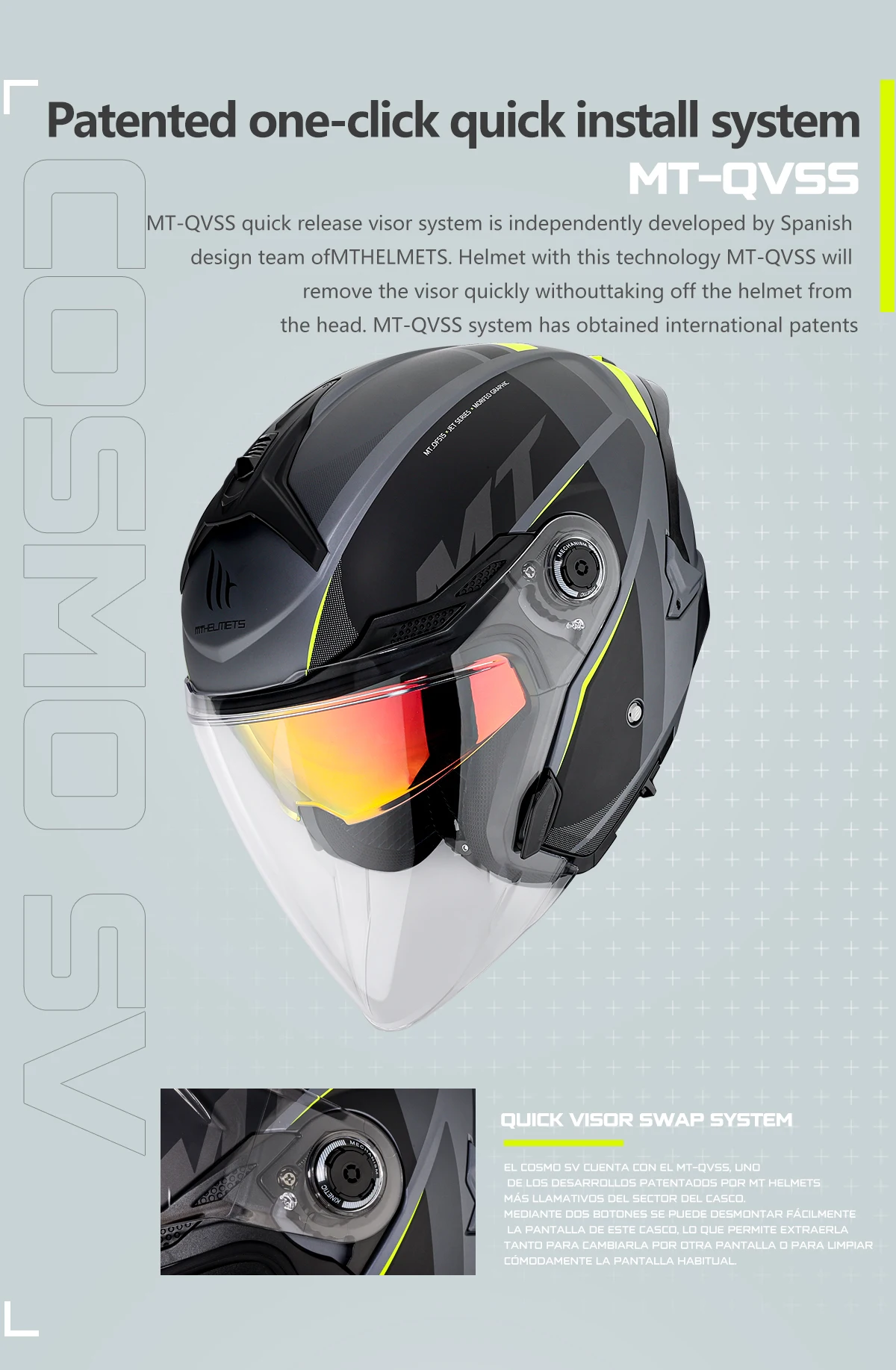 - Quick Visor Swap (MT‑QVSS) – Patented mechanism allows visor changes in seconds without removing the helmet
