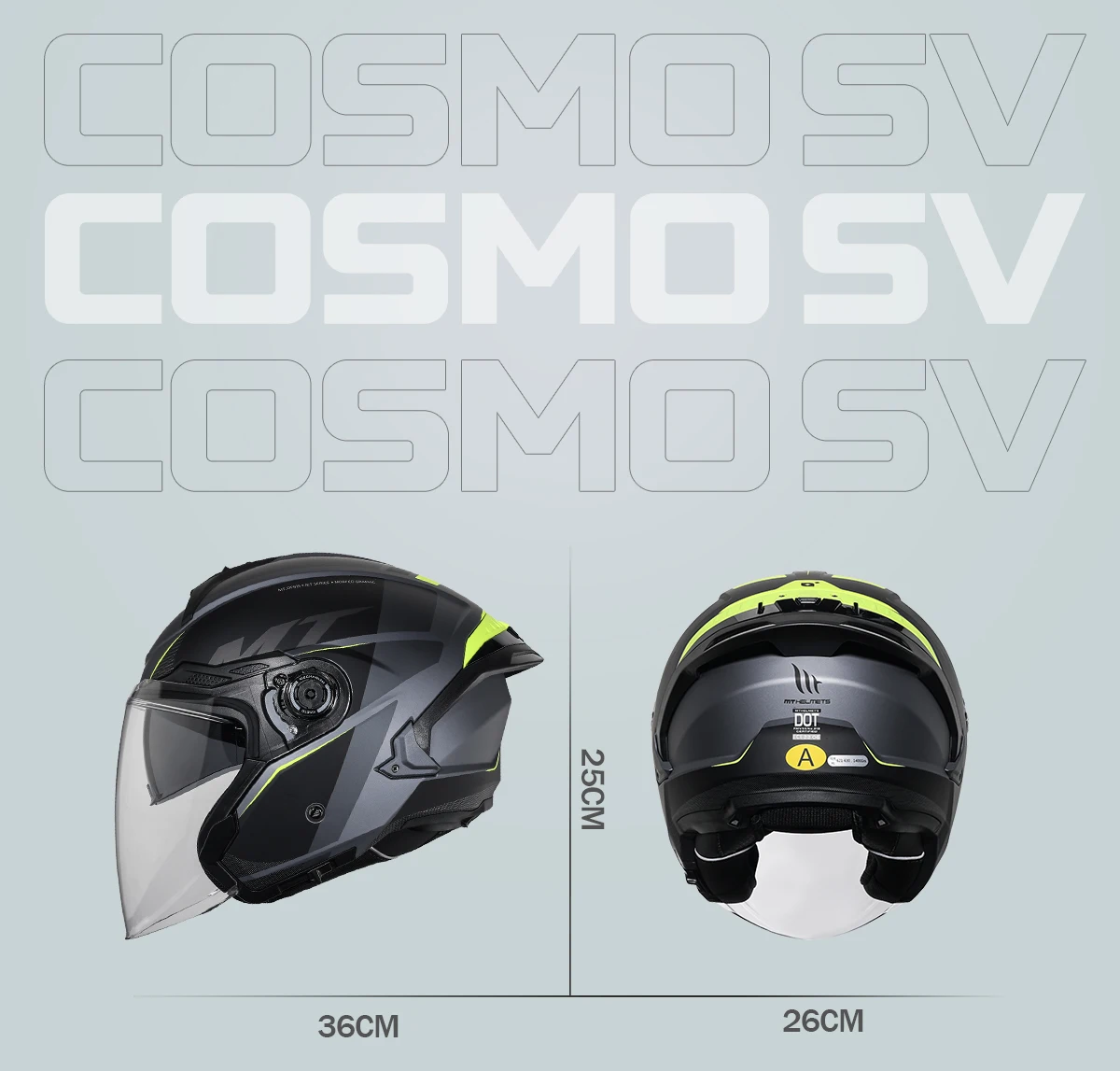 MT Cosmo SV Helmet – Dual‑Visor Open‑Face Helmet (DOT & ECE 22.06) Gloss Black Open‑Face Helmet with Dual Visor