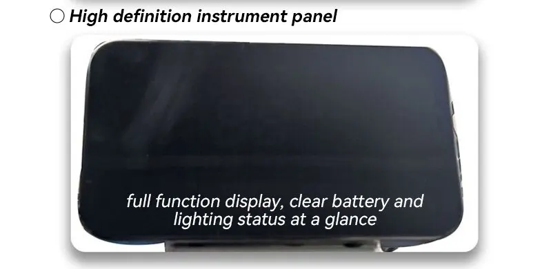 - Display Panel: Intelligent dashboard shows battery, speed, power level, and undervoltage