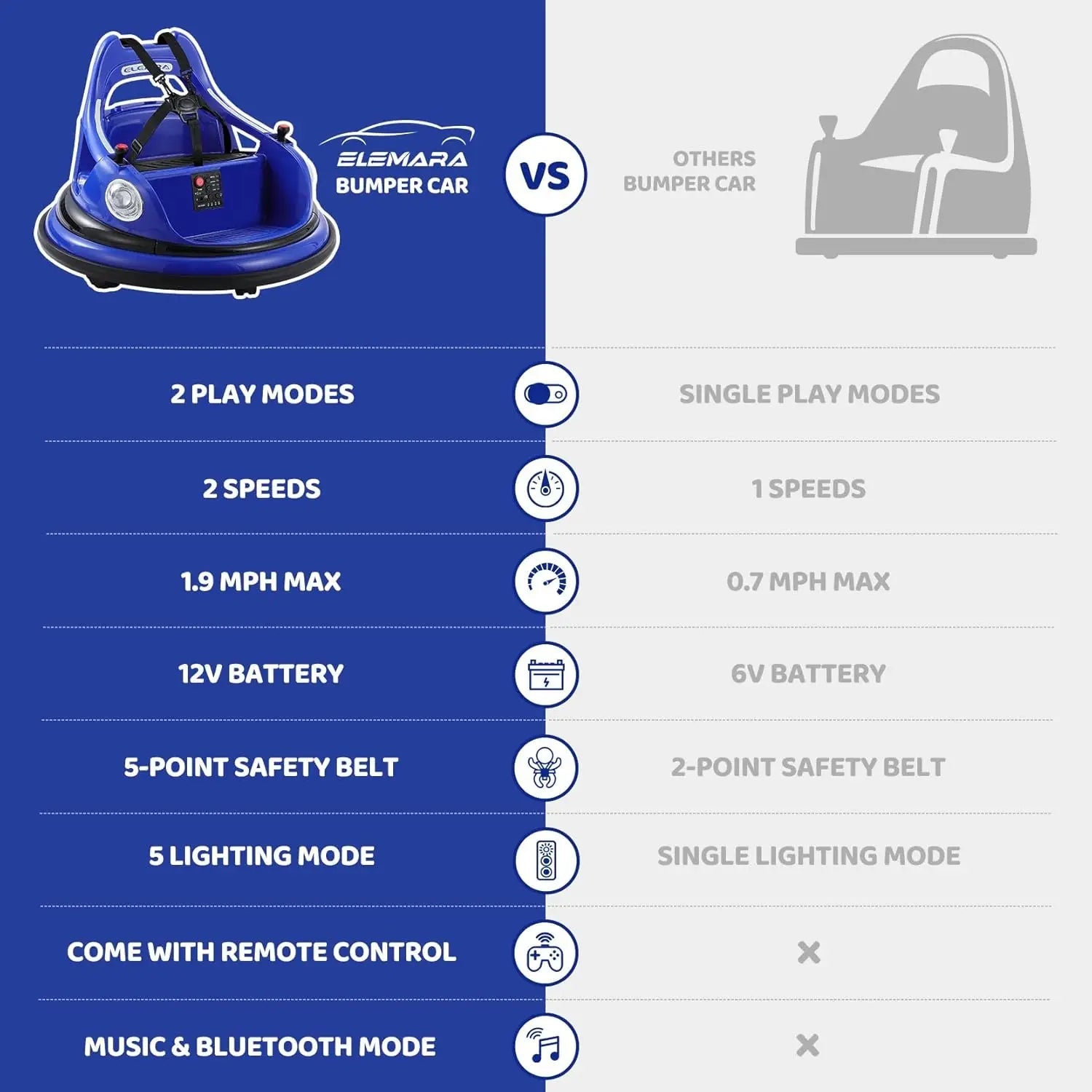 1. 【Bumper Car with 1.9mph Max】ELEMARA Bumper Car for Kids allows your child to enjoy top speeds of up to 1.9mph for unparalleled fun and excitement! Enjoy the thrilling collision experience!
