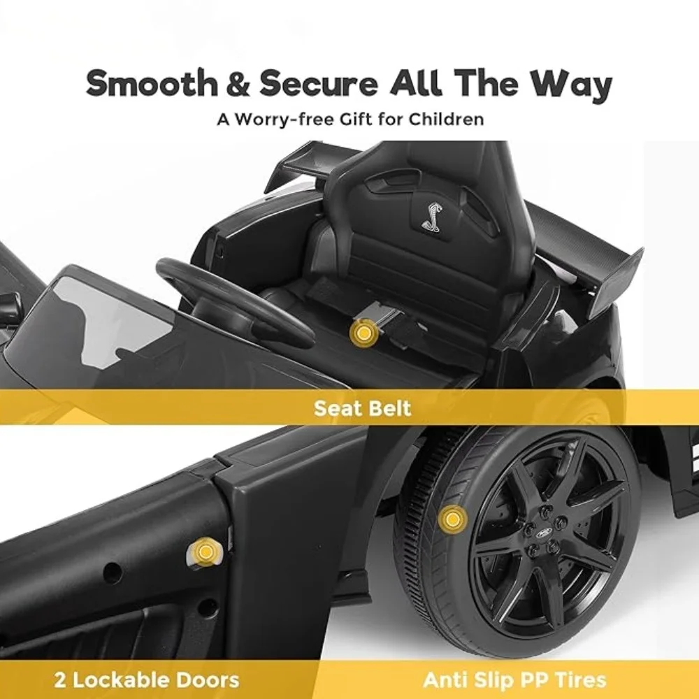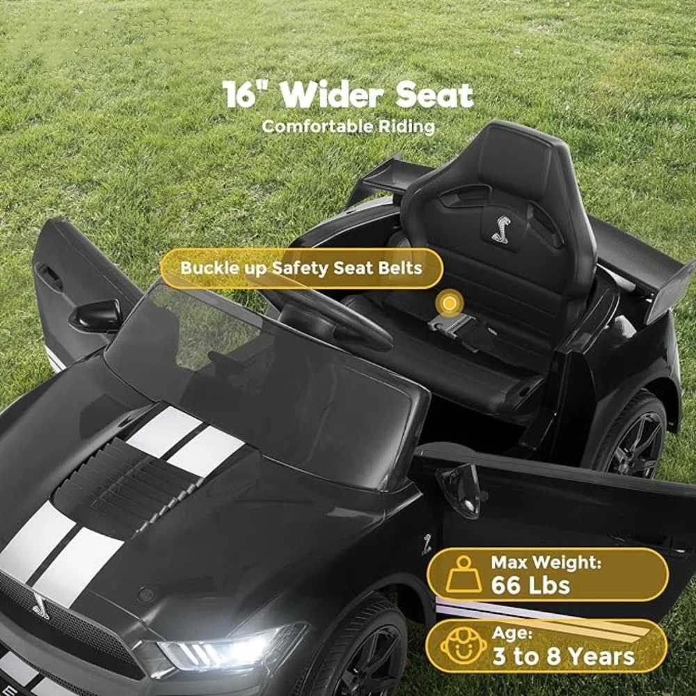 【Spacious 16" Wider Seater】Ride-on car comes with a wide seat and seat belt. The maximum weight capacity for this electric car for boys and girls is 66 Lbs, providing a comfortable and roomy ride for children aged 3 to 8.