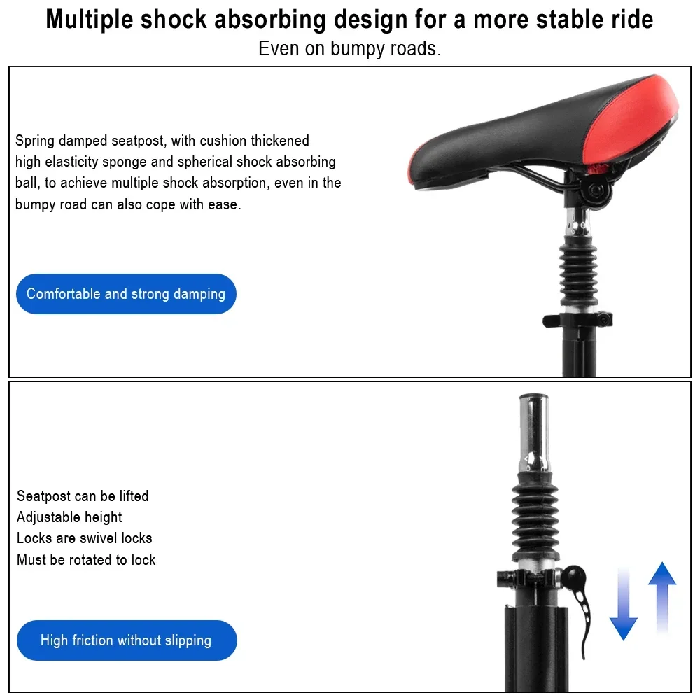 Adjustable Height: Easily adjust the seat height between 18.1 inches and 24.8 inches to suit your riding preference and comfort level.